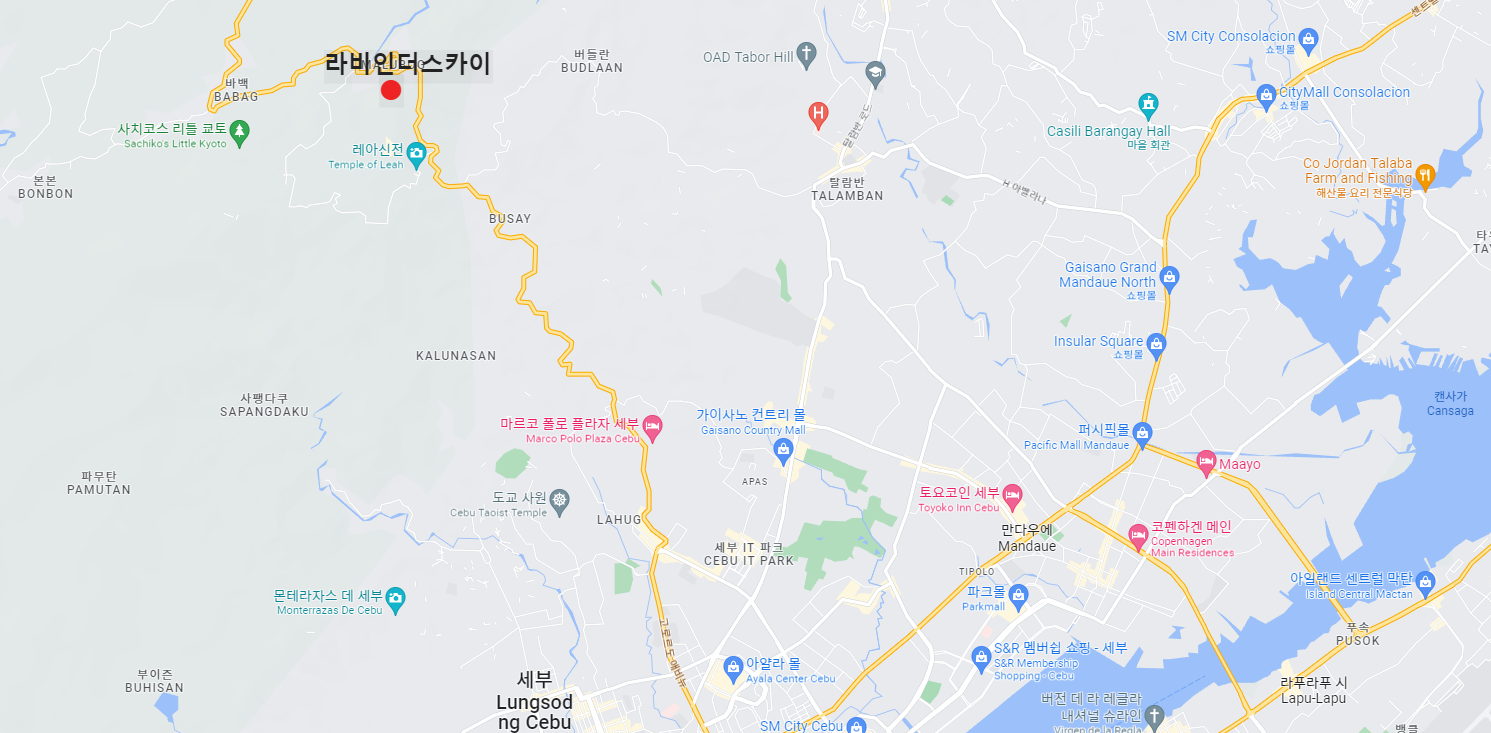 라비인더스카이는 세부시티에서 자동차로 약 30분 정도 운전하면 갈 수 있답니다.